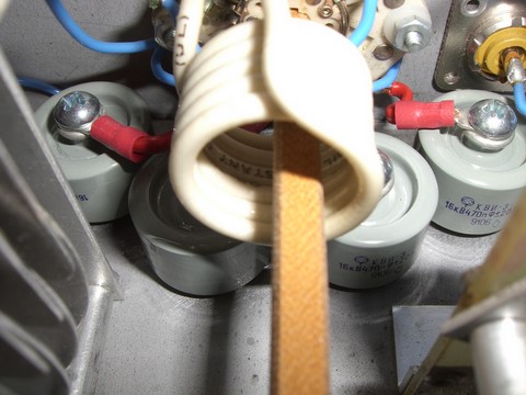 The fix was simple in theory:  replace the disc ceramic caps with “doorknob” caps, which are available on the Internet.  I found a source on e-bay of surplus Soviet military 16 kV/15 Amp RF units with excellent high-temperature specifications.  Do a search on e-bay using “capacitors doorknob”, and you’ll see a bunch at great prices.